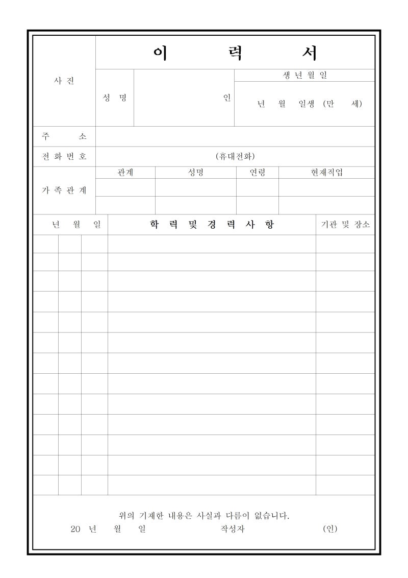 취준생을 위한 5가지 이력서 체크리스트 취업 준비를 할 때 가장 먼저 마주하는 관문은 바로 이력서 작성입니다.하지만 많은 취준생들이 사소한 실수나 기본적인 부분을 놓쳐 면접 기회조차 얻지 못하는 경우가 많습니다.오늘은 취준생이라면 반드시 확인해야 할 이력서 체크리스트 5가지를 정리해 보았습니다.1. 기본 인적 사항 정확히 기재하기이름, 연락처, 이메일 주소는 반드시 최신 정보로 작성해야 합니다.오타가 없는지, 이메일 주소가 너무 가볍거나 비전문적으로 보이지 않는지도 체크하세요.특히 휴대폰 번호 오류는 바로 탈락으로 이어질 수 있습니다.✅ TIP: 가능하다면 프로페셔널한 이메일 주소(예: 이름+숫자)를 사용하는 것이 좋습니다.2. 깔끔하고 읽기 쉬운 이력서 디자인화려한 디자인보다 가독성이 중요합니다.글씨 ..